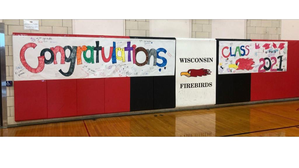 Two paper banners with the words "Congratulations" and "Class of 2021."